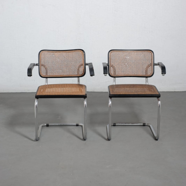 Com braços em madeira, estrutura metalica e palhas naturais - Par - * SELADA ITALIANA