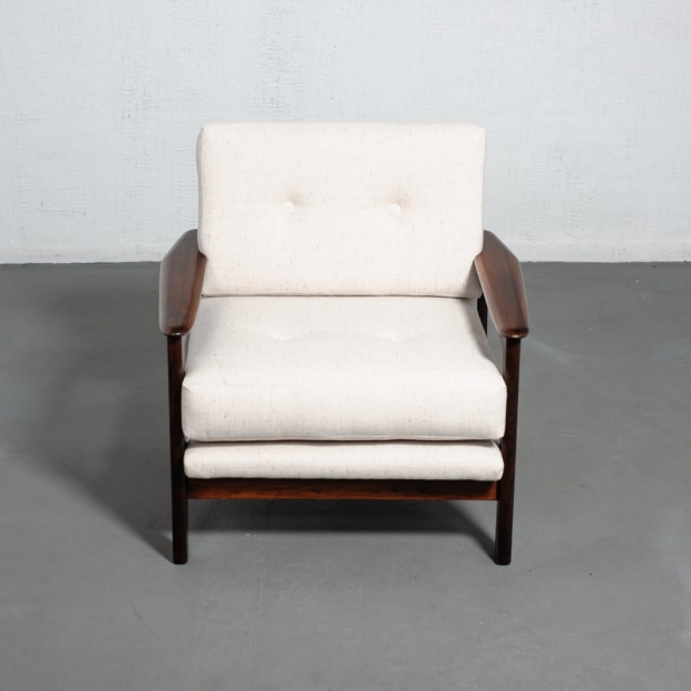 Selada - Anos 60  - Jacarandá maciço e Tecido Algodão e Linho